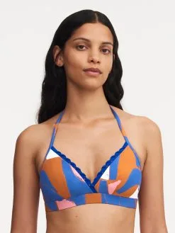 Bügelloser Bikini Triangel-BH von Chantelle mit einem tiefen Ausschnitt und einem Gummizug unter der Brust für einen sicheren Halt. Der Triangel-BH hat einen Verschluss am Rücken und einen Bindeverschluss im Nacken.
